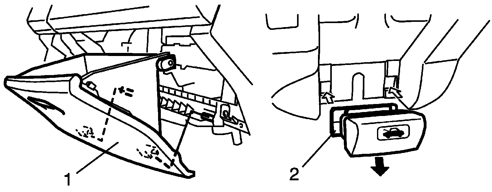 6. Remove glove box (1).