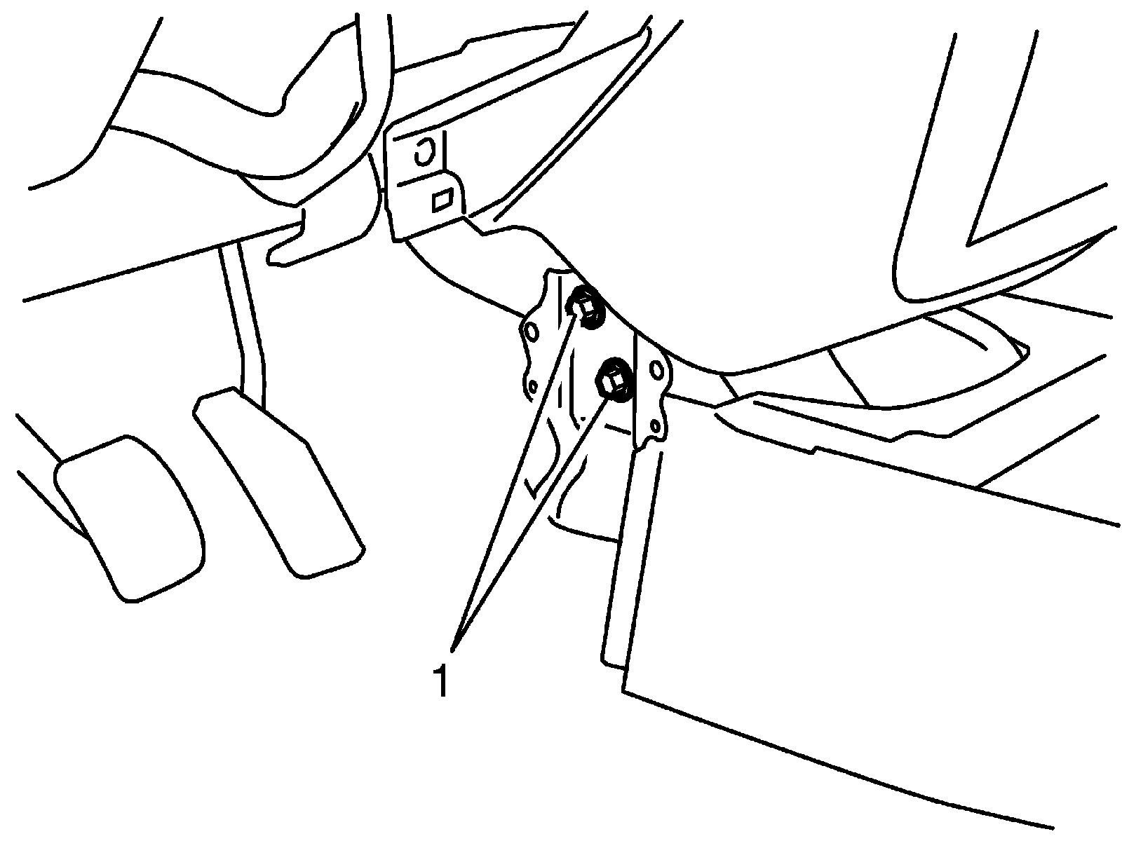 9. Remove instrument panel center lower bracket bolts (1).