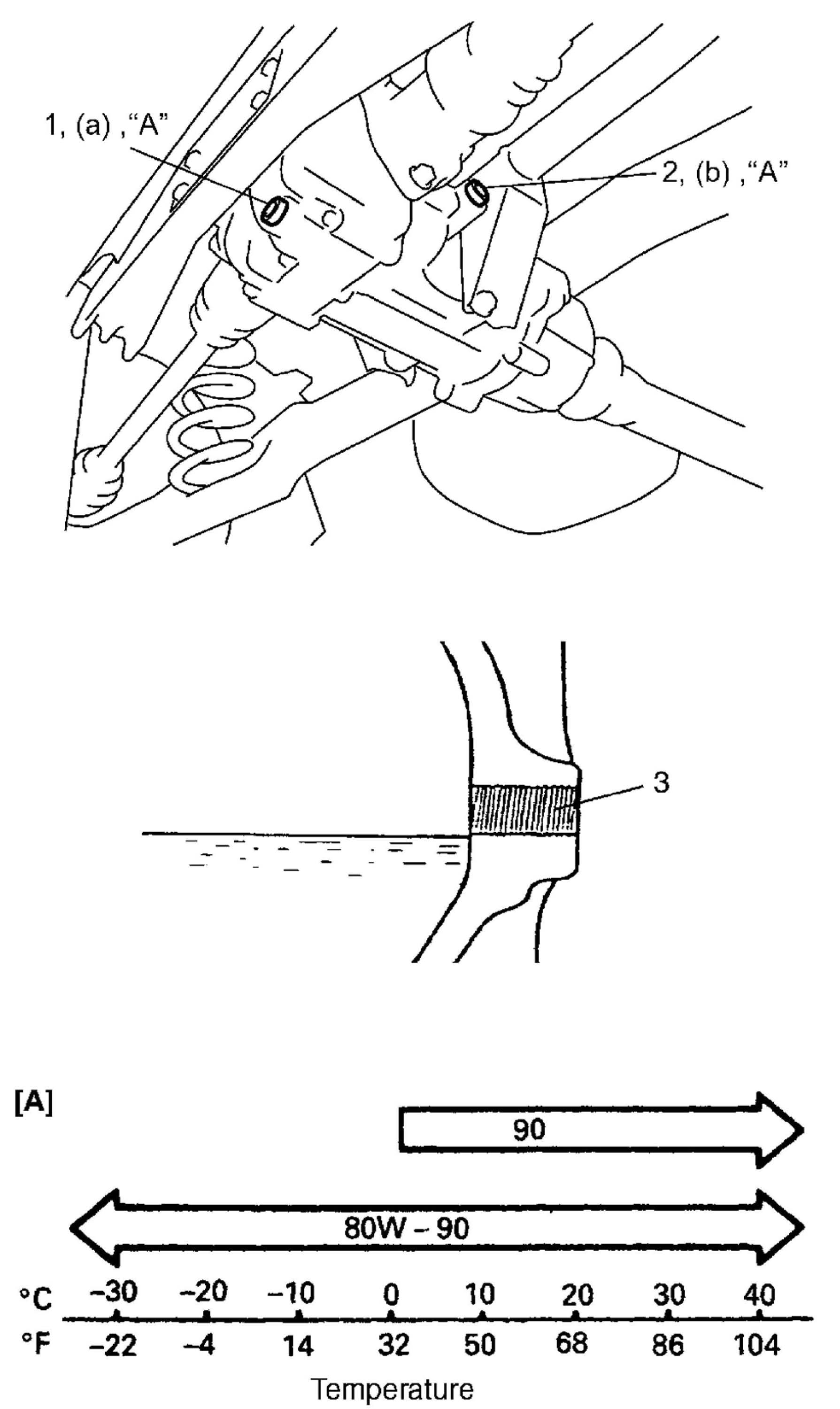 Differential oil specification: API GL-5 (For SAE classification, refer to viscosity chart [A] in figure.)
