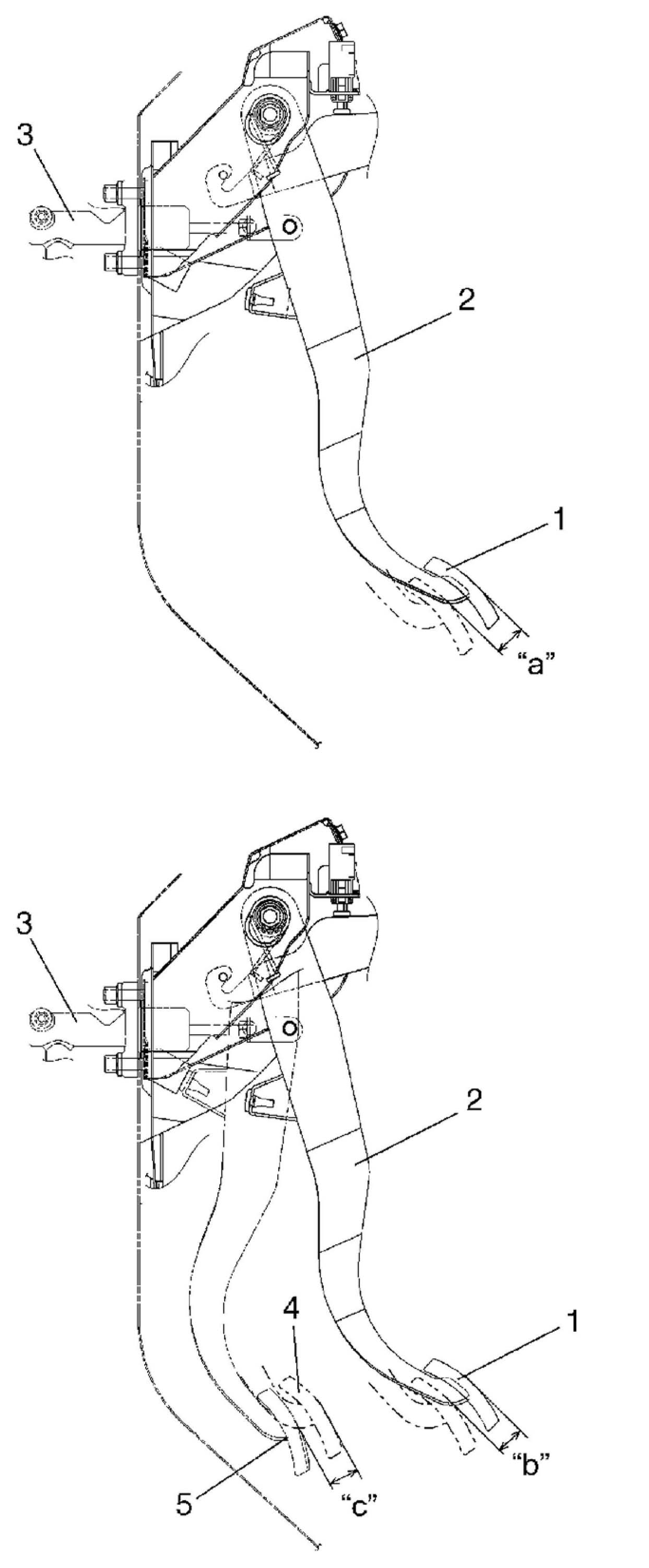 5. Measure distance between release point (4) and full stroke point (5) on clutch pedal (1) which is shown by "c" in the figure.