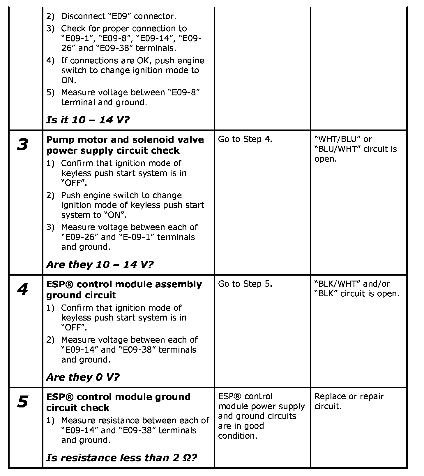 ESP(R) Control Module Power Supply and Ground Circuit Check