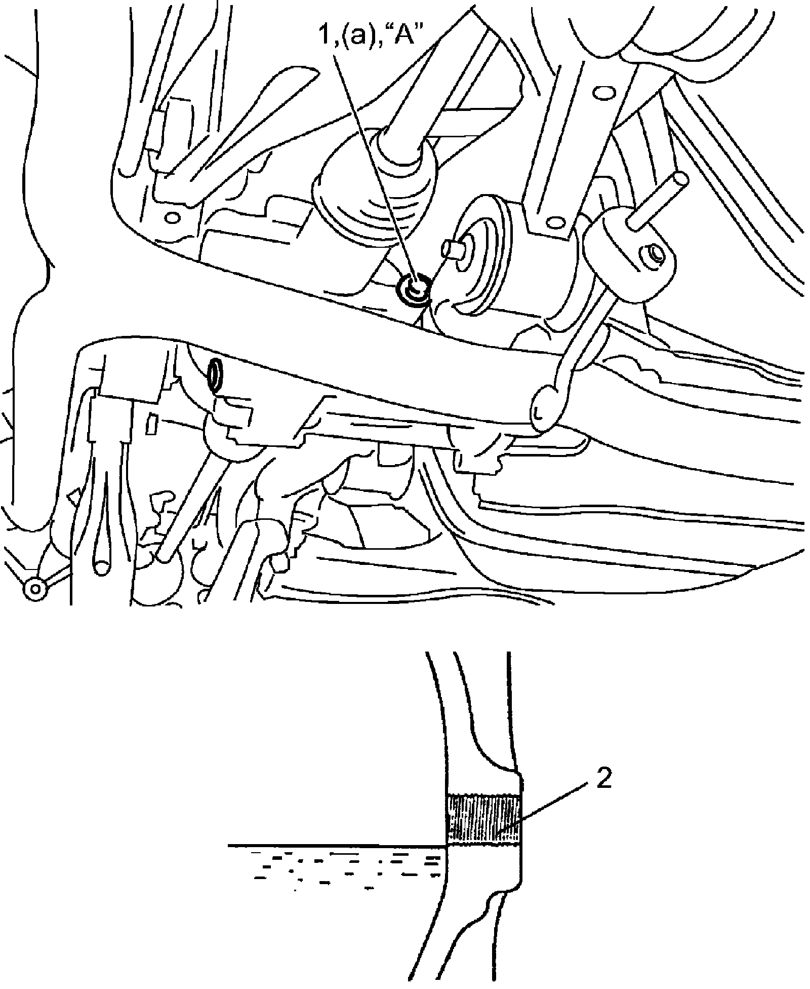 2) Remove oil level / filler plug (1) and check oil contamination and also that the oil level is just below the oil level / filler plug hole (2).