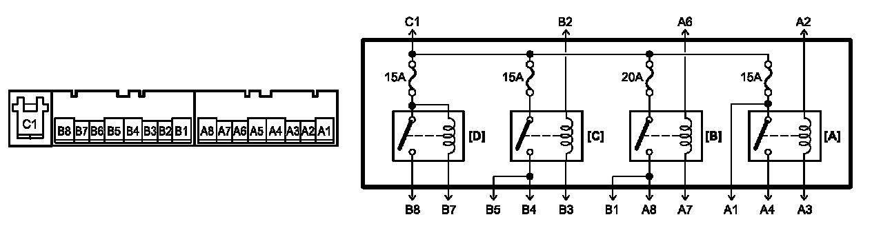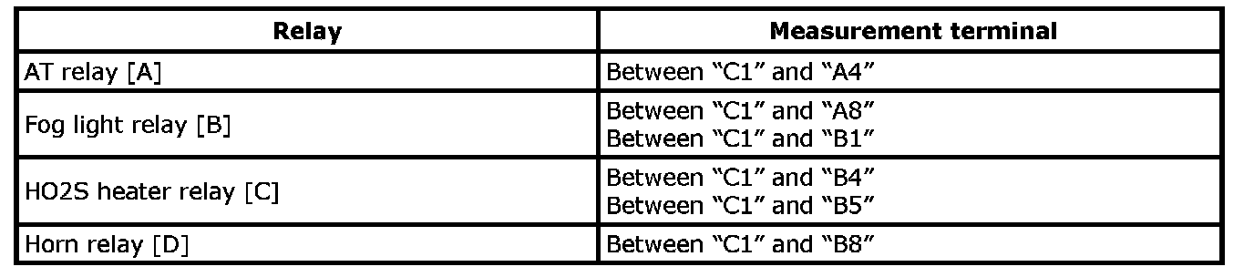 2. Check that there is no continuity between terminals of each relay as following table.