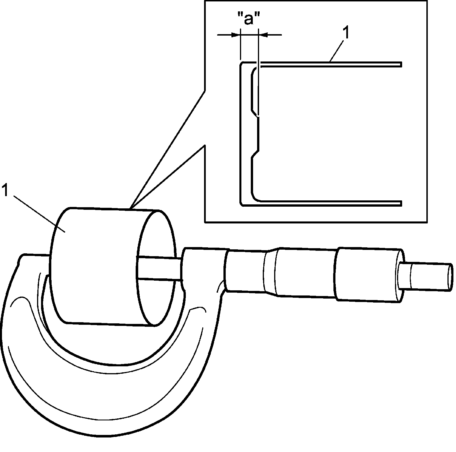 a) Using a micrometer, measure the thickness of the removed tappet (1).