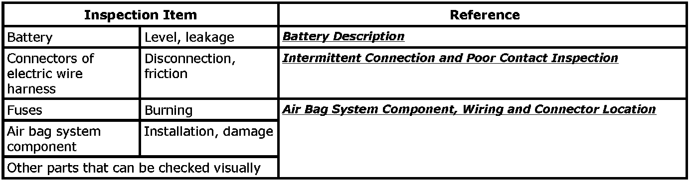 Visually check the following parts and system.