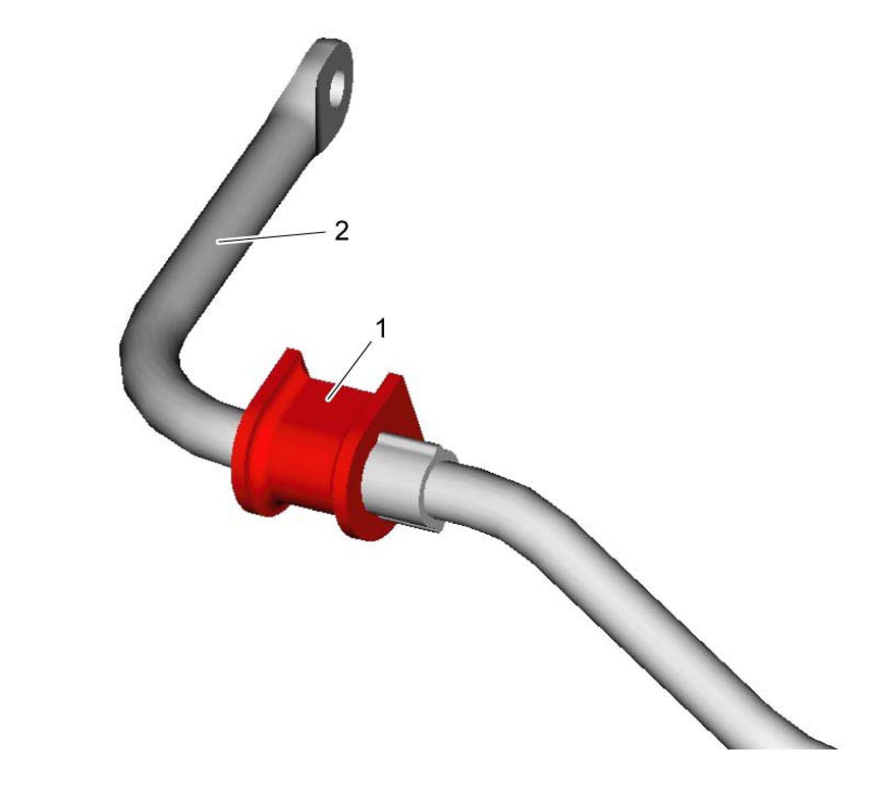 5) Remove rear stabilizer bar mount bushings (1) from rear stabilizer bar (2).
