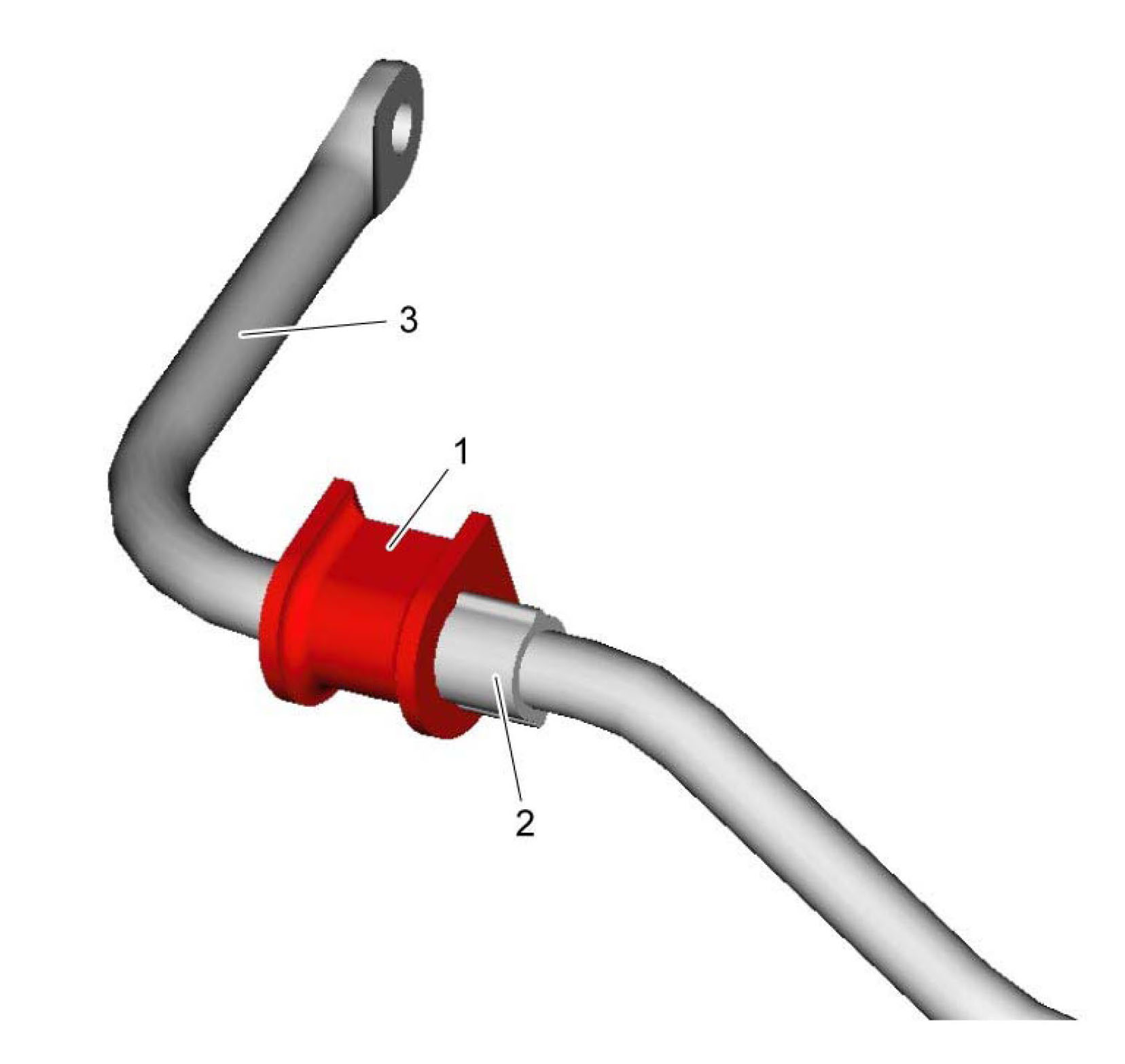 1) Install each rear stabilizer bar mount bushing (3) on rear stabilizer bar (1) with end of bushing closely fitted against ring (2).