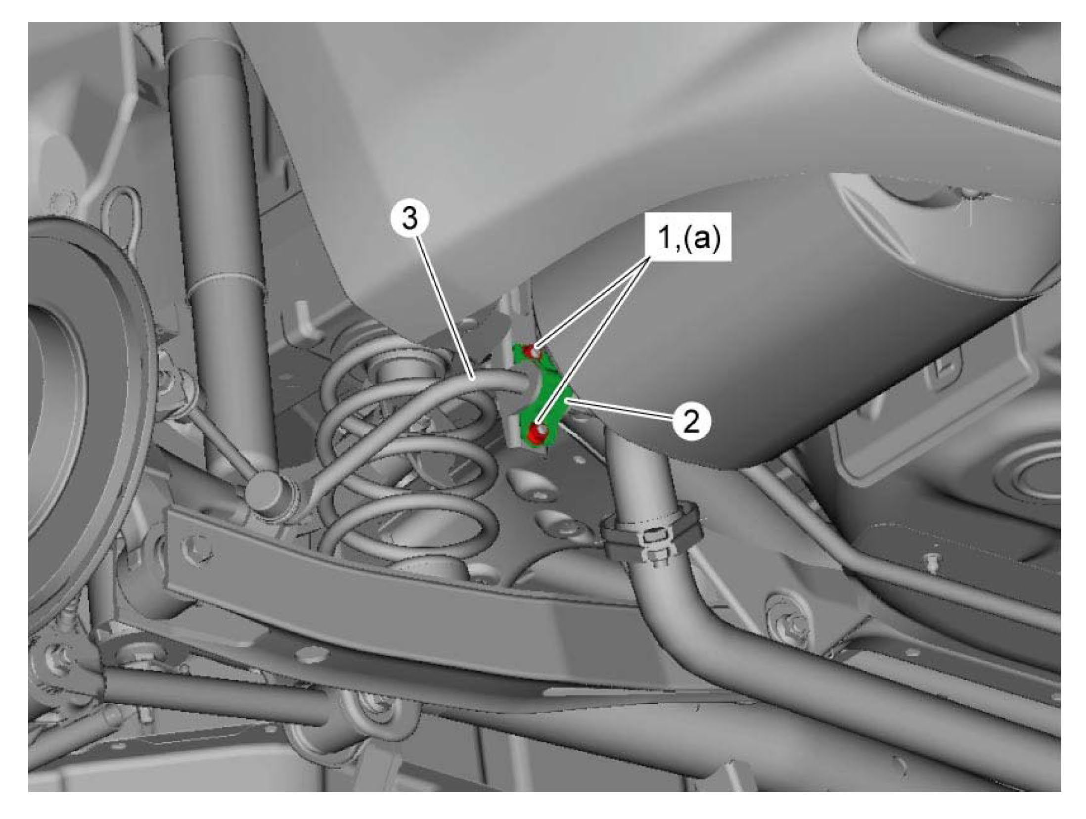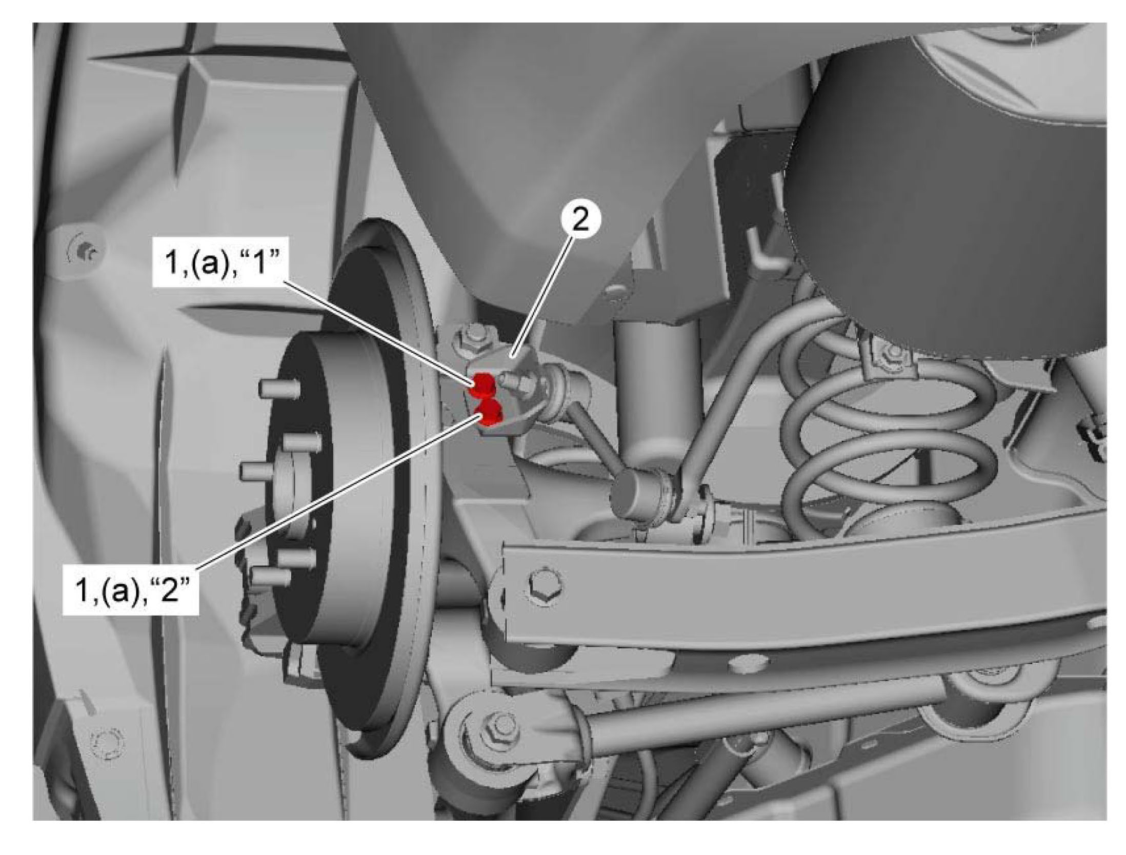 ^ Tighten rear stabilizer bracket mount bolts (1) in numbered order ("1" --> "2") to specified torque.