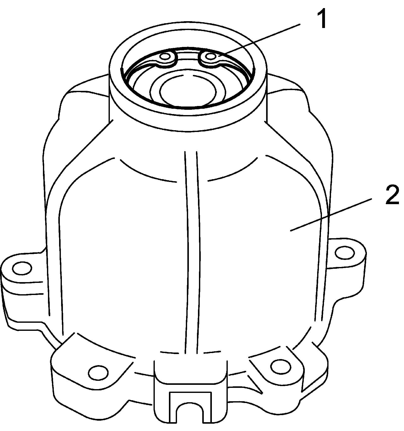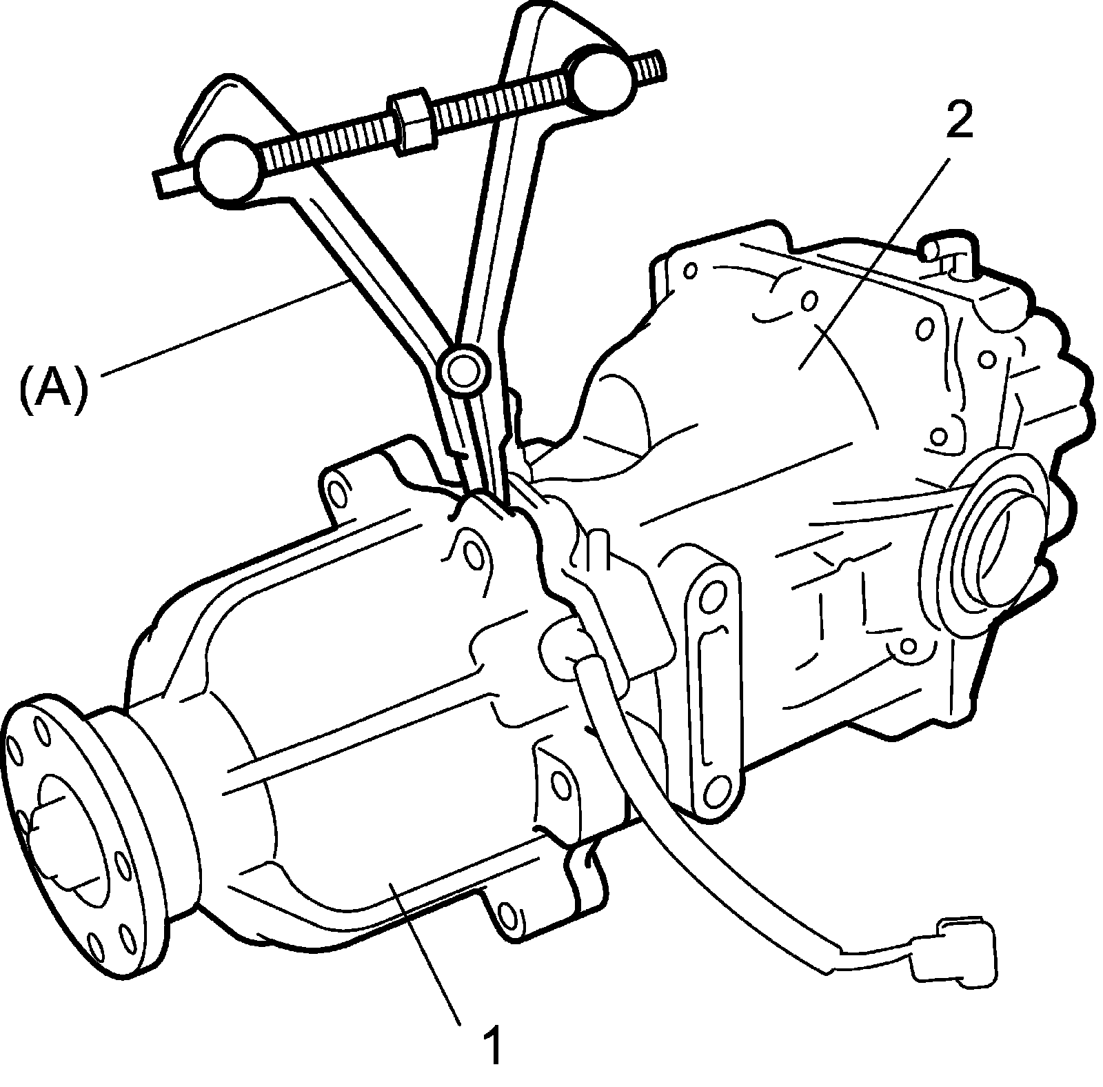 2) Use special tool to separate coupling case (1) from differential carrier (2).