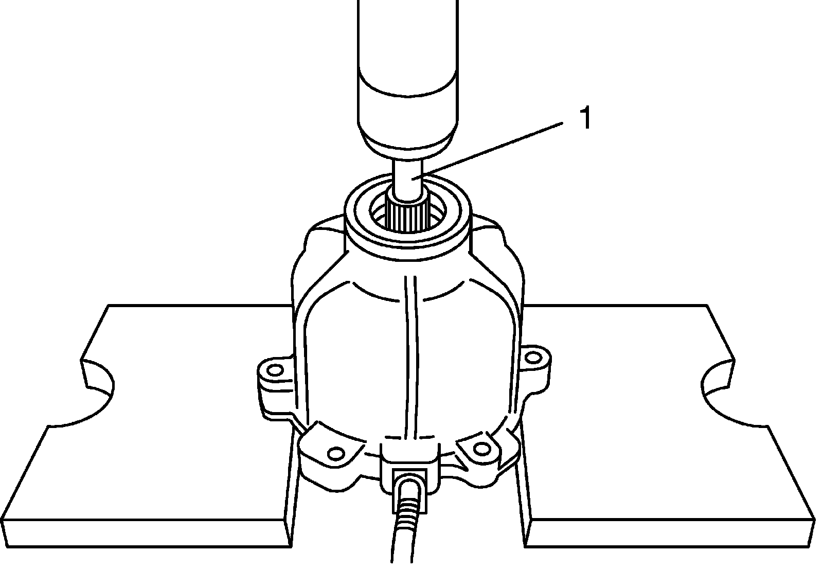 1) Use special tools and hydraulic press as shown in figure to press-fit bevel pinion bearing outer races to differential carrier (1).
