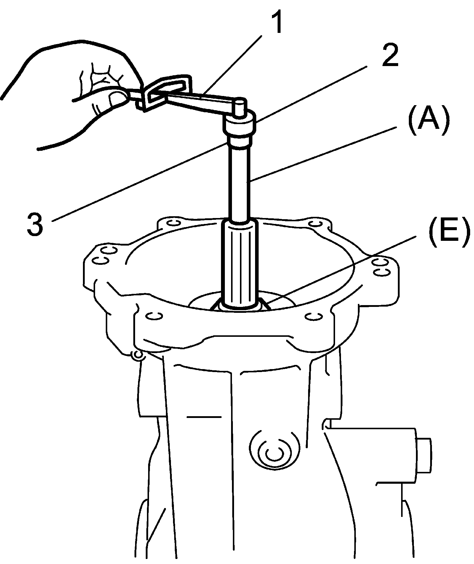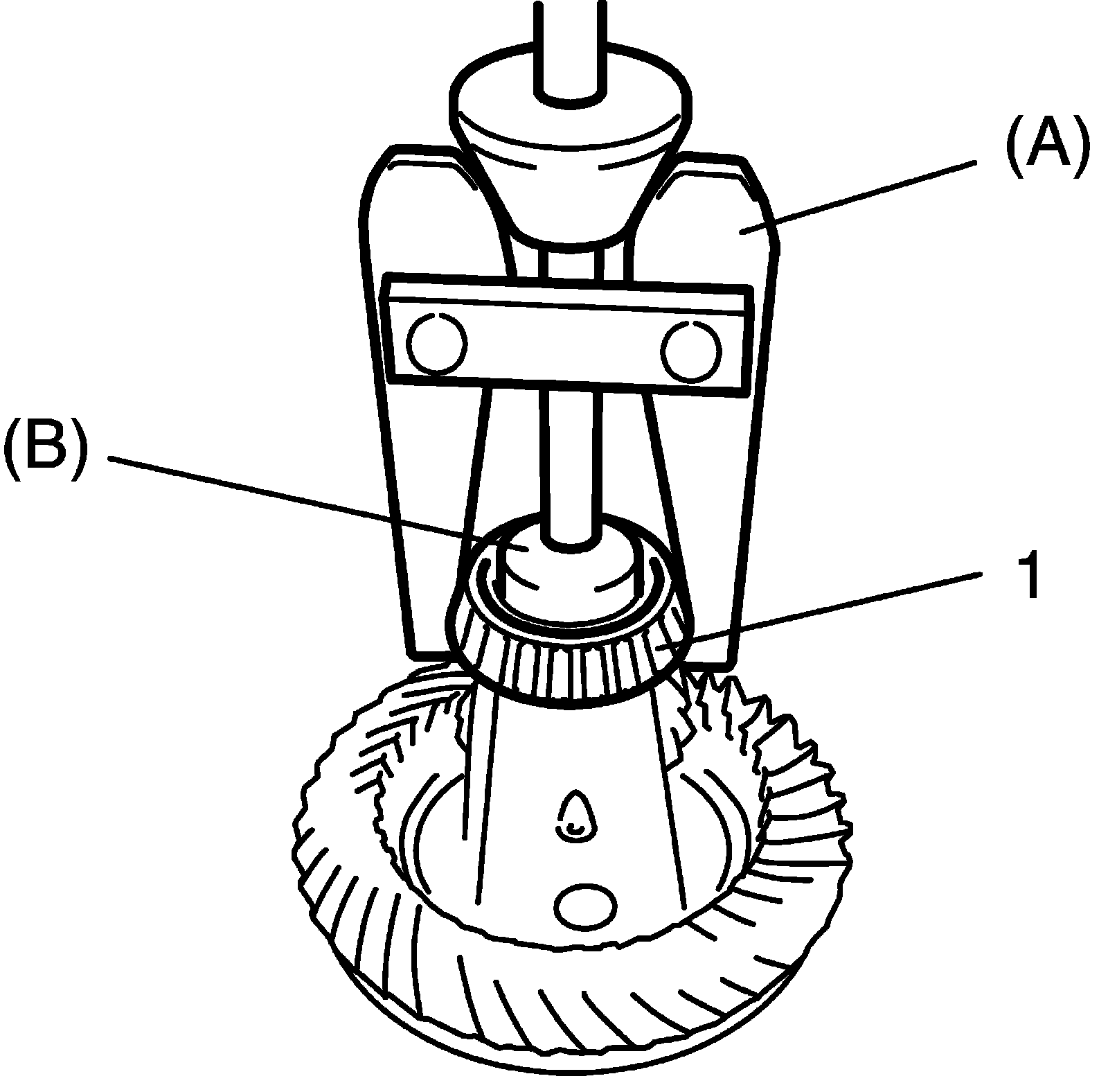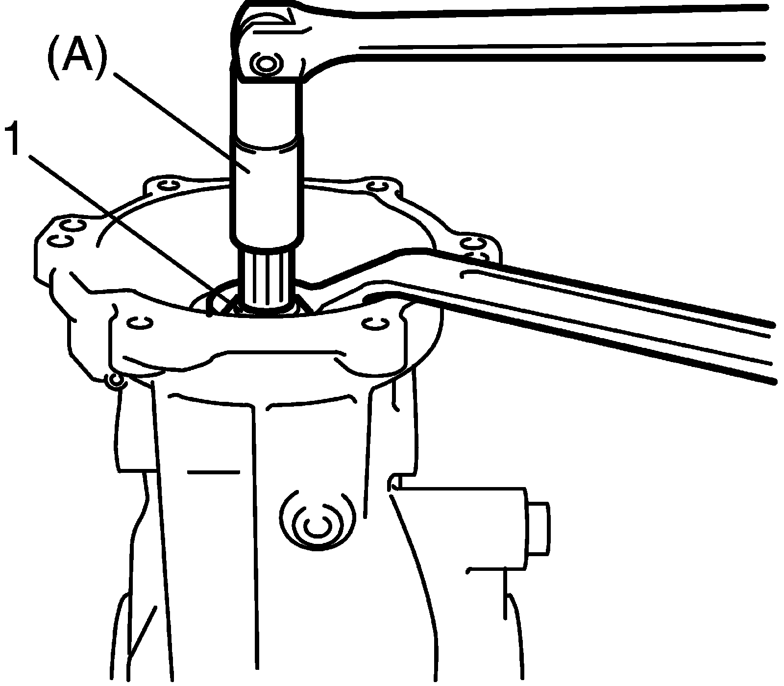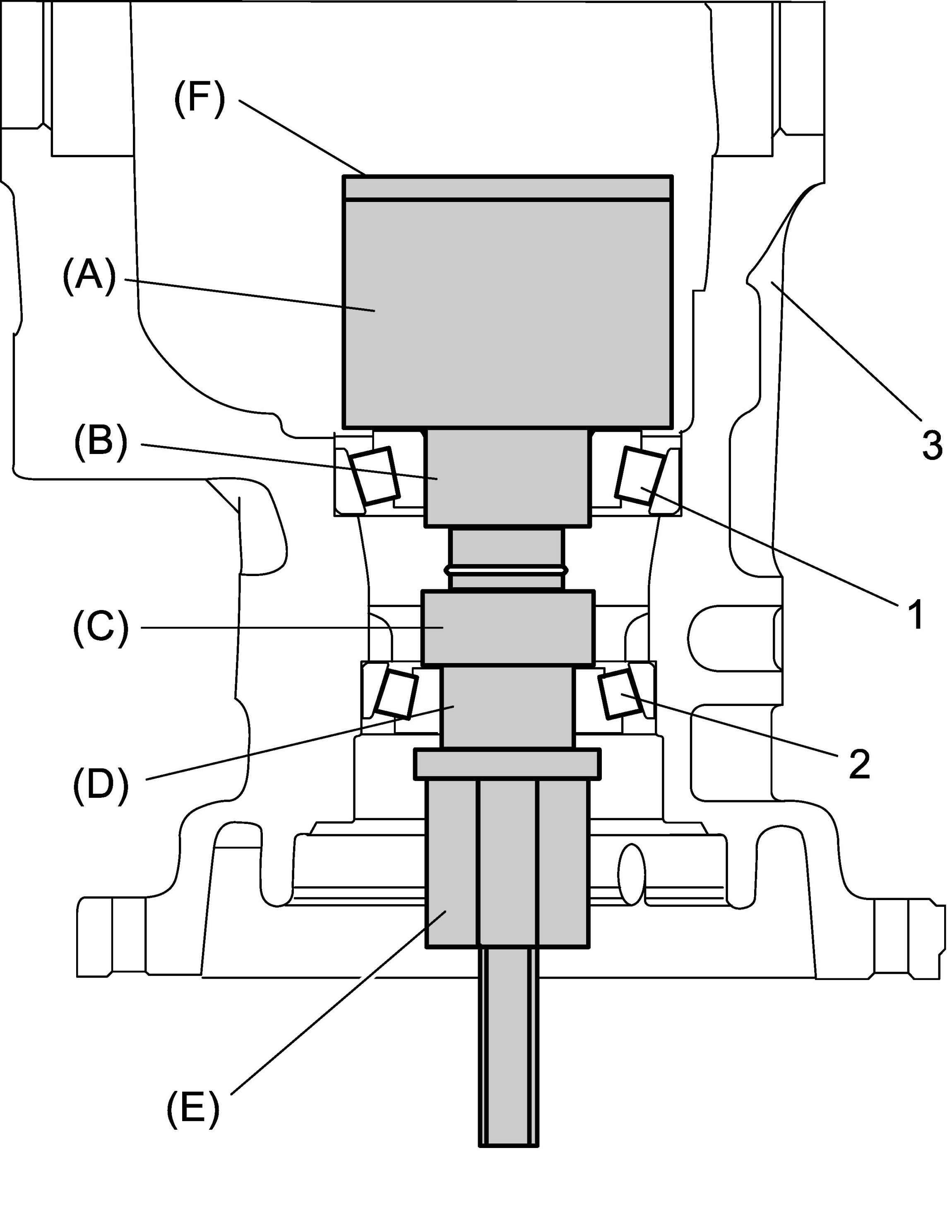 ^ Before taking measurement with torque wrench (2), check for smooth rotation by turning bevel pinion for 15 revolutions or more by hand.