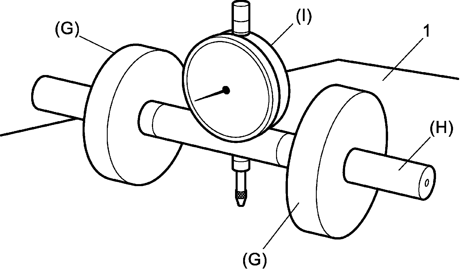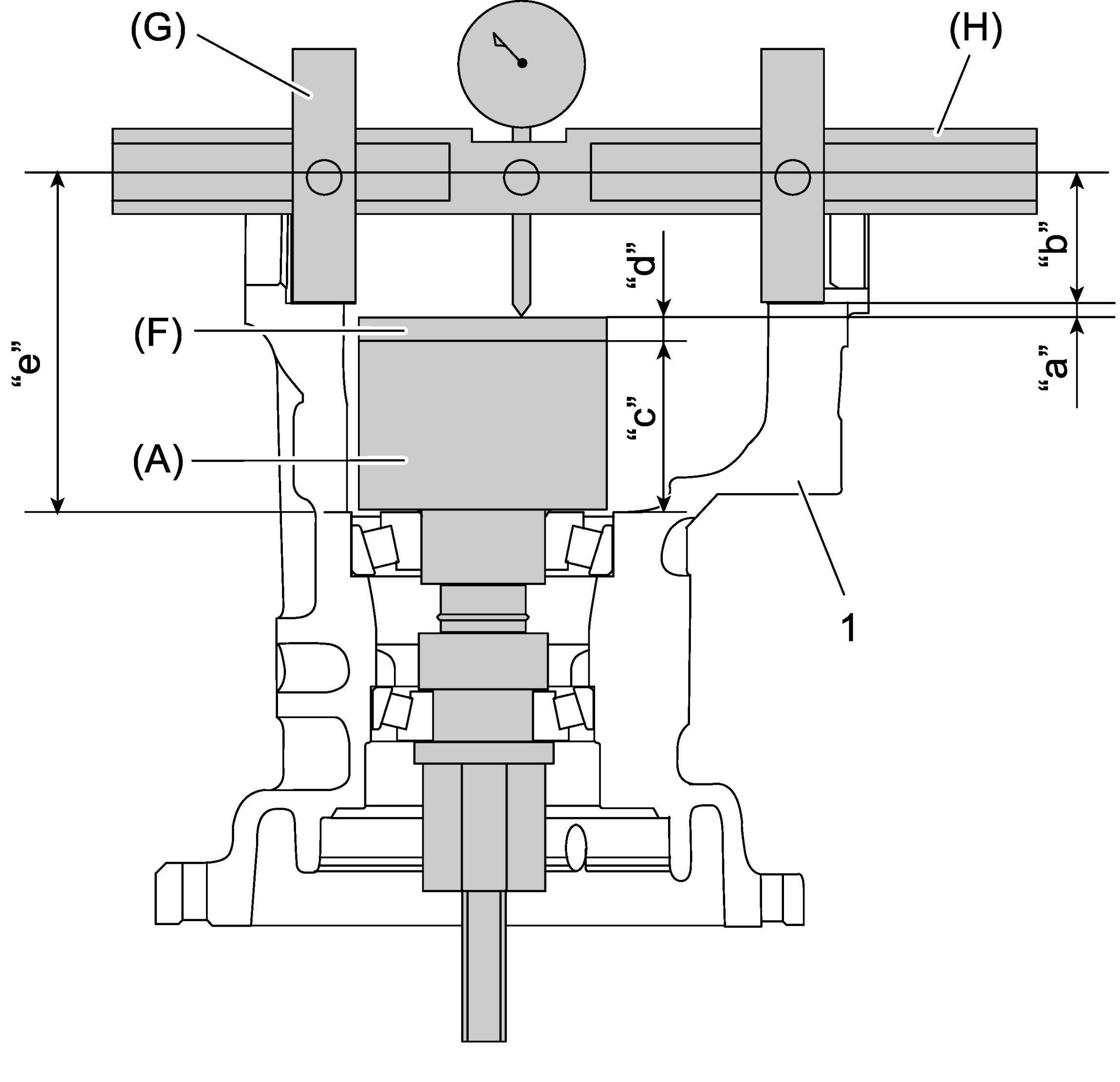 d) Set dial gauge to axle dummy and make 0 (zero) adjustment on surface plate (1).