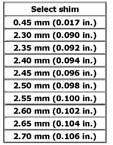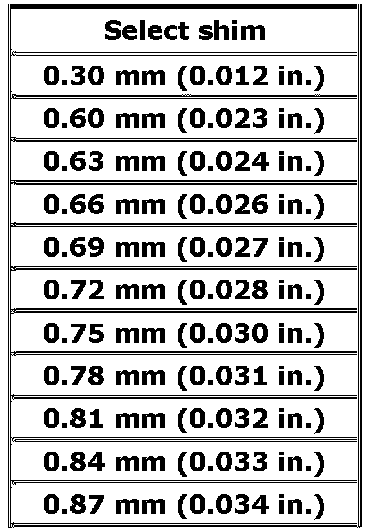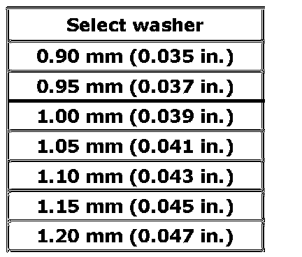 Available bevel pinion shim thickness