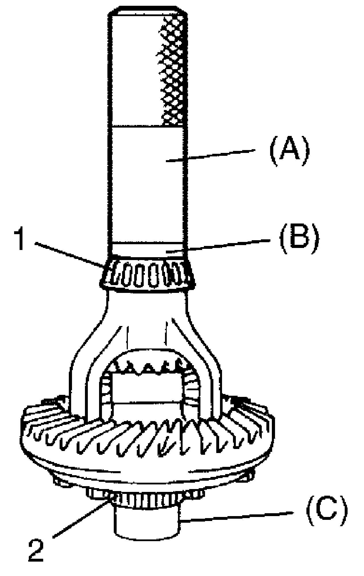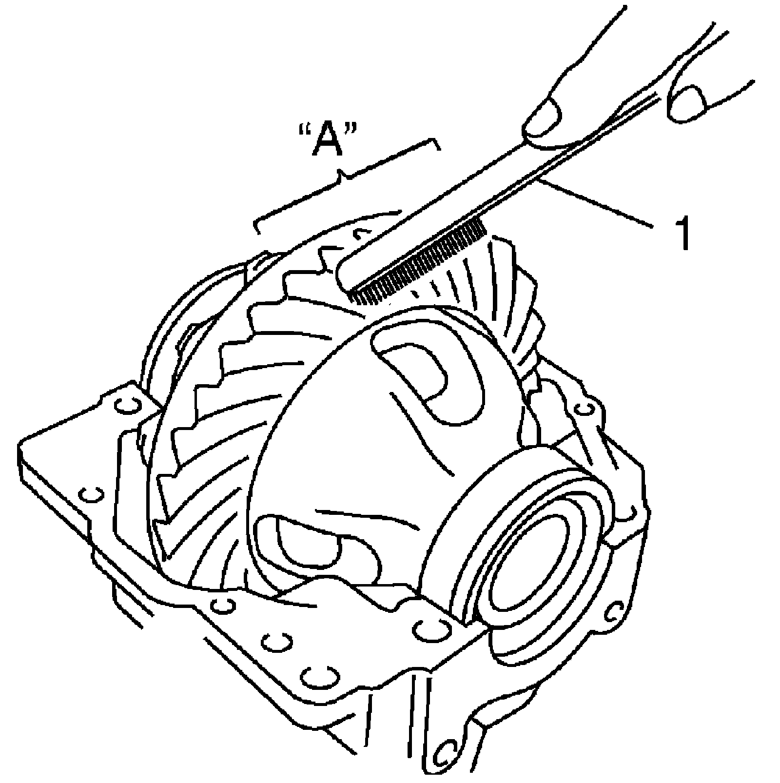 i) After cleaning 10 bevel gear teeth, paint them with gear marking compound evenly with a brush (1) or sponge etc.