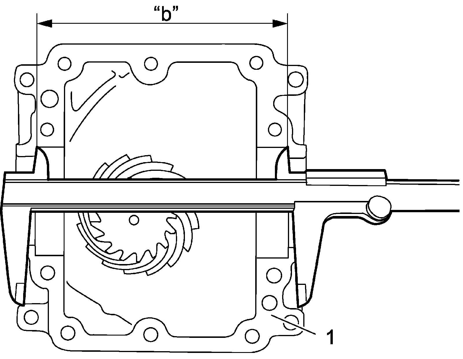 b) Measure distance "b" of bearing retaining position in differential carrier (1).