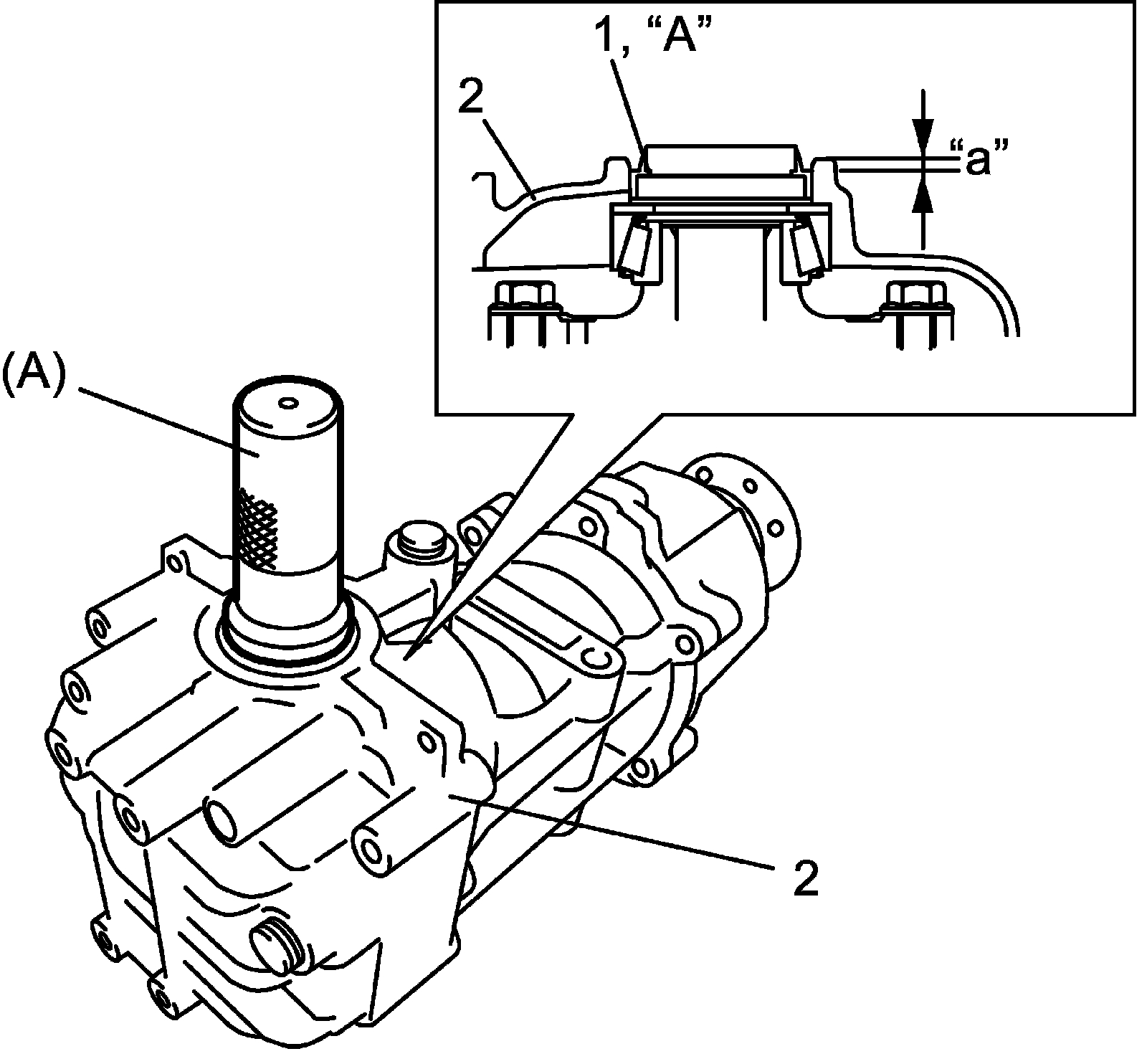 a) Apply differential oil to front bearing (2) and rear bearing (1).
