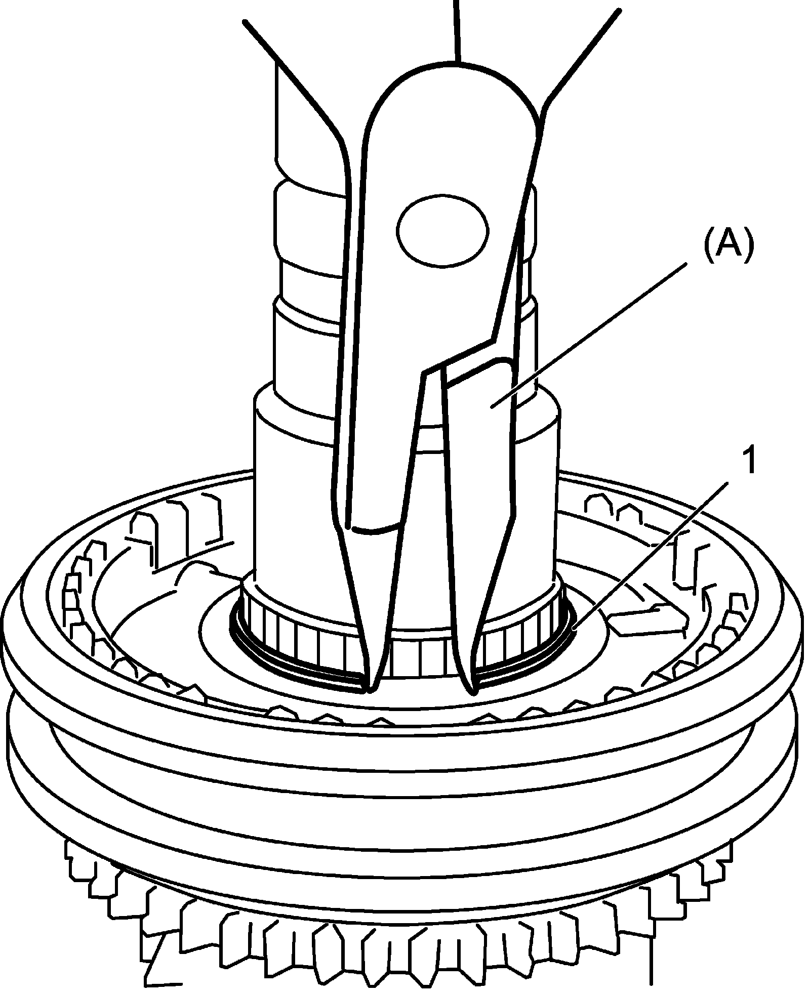 6) Install 5th gear spacer (1) using special tools and hydraulic press.