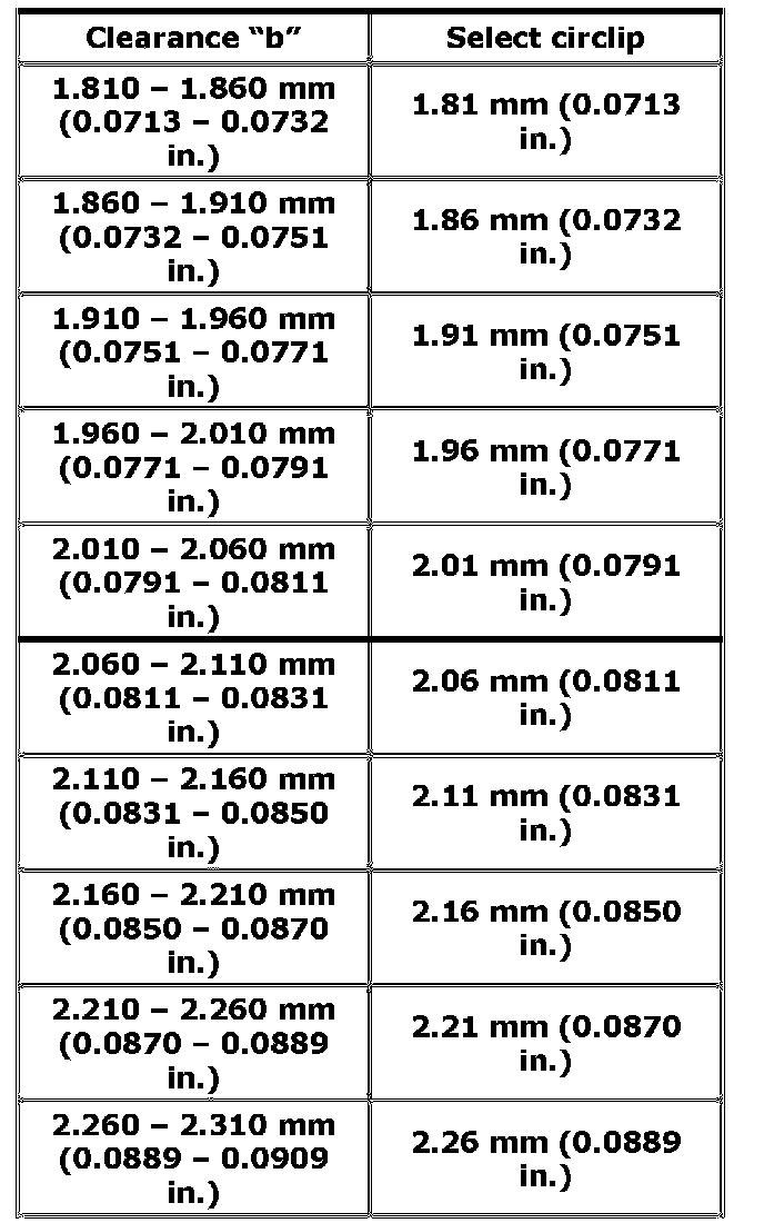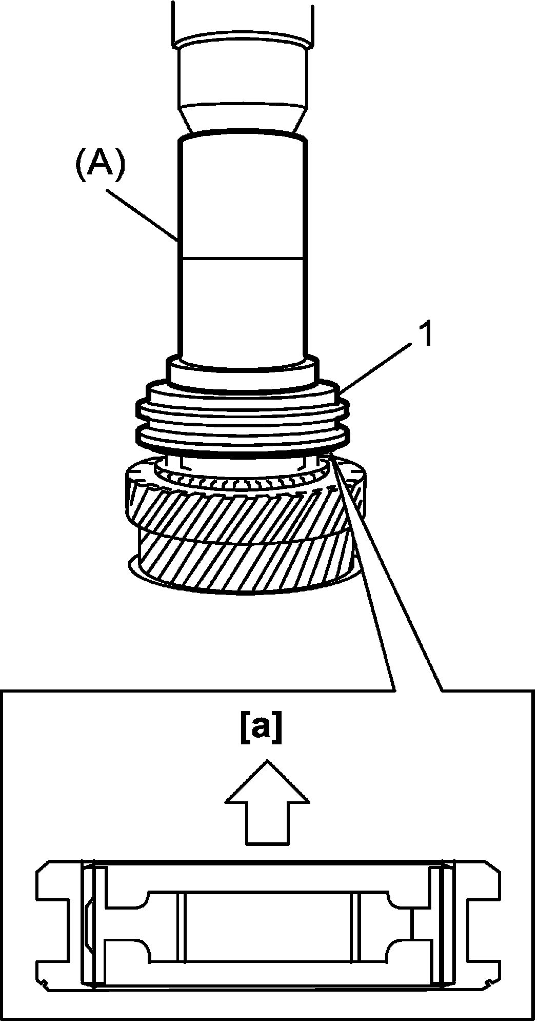 13) Select circlip (1) that makes thrust clearance "a" of bearing 0.1 mm (0.004 in) or less and install it.