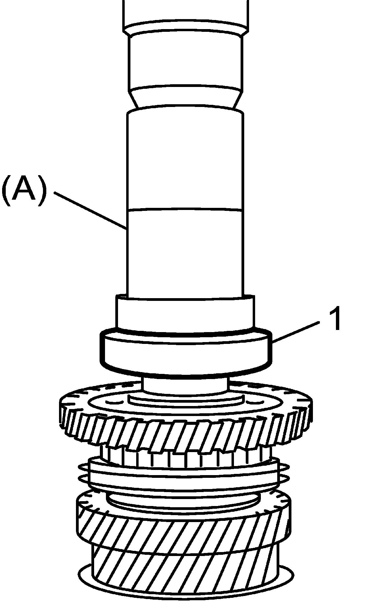 ^ Check free rotation of 3rd gear (1) after press-fitting sleeve & hub assembly.