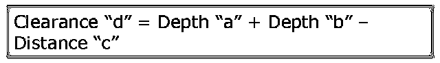 Clearance "d" = Depth "a" + Depth "b" - Distance "c"