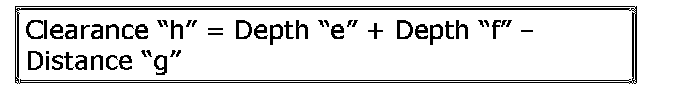 Clearance "h" = Depth "e" + Depth "f" - Distance "g"