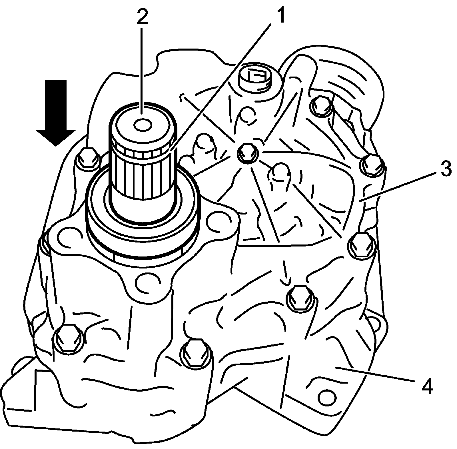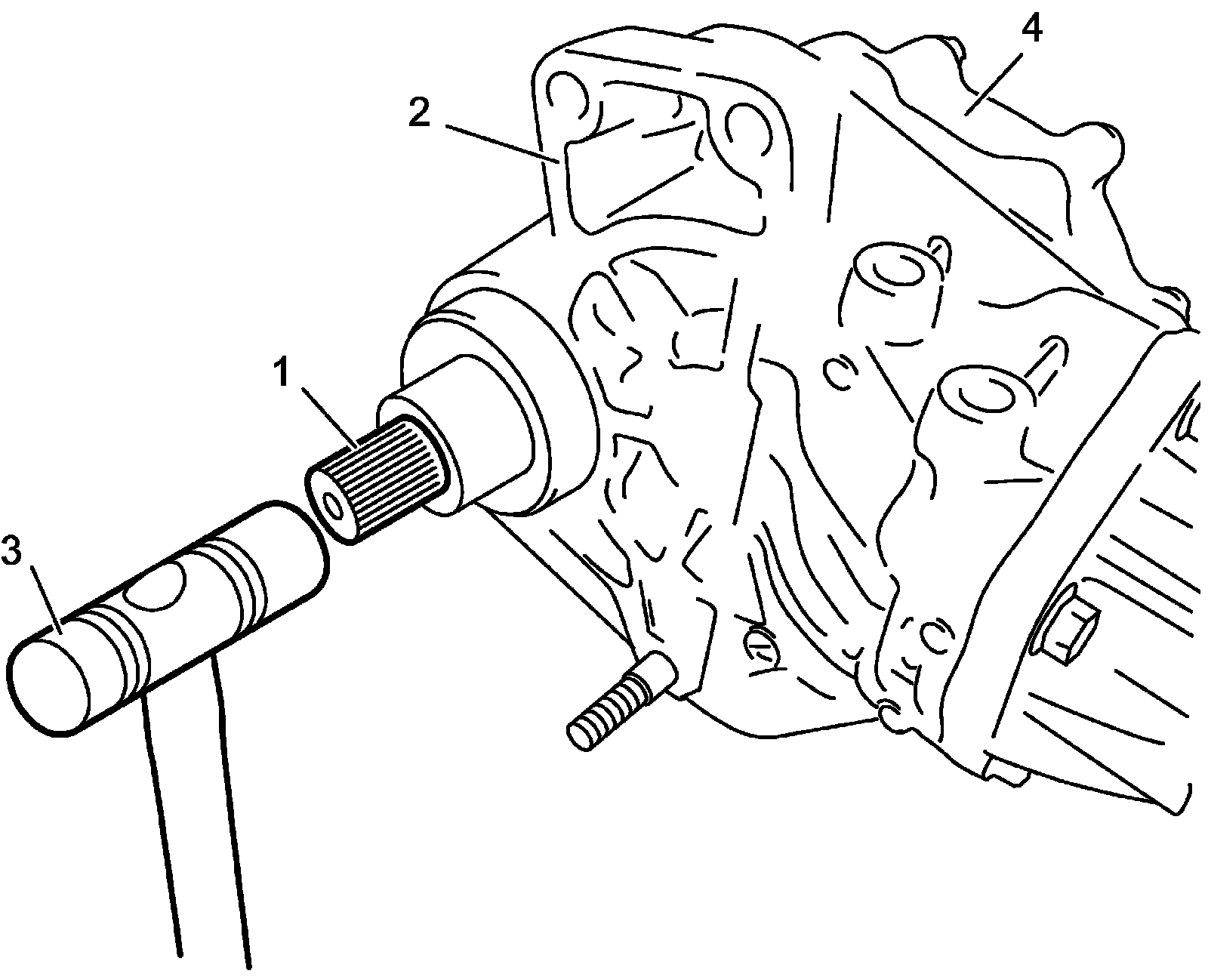 3) Install intermediate shaft to transfer from transfer right case (3) side.