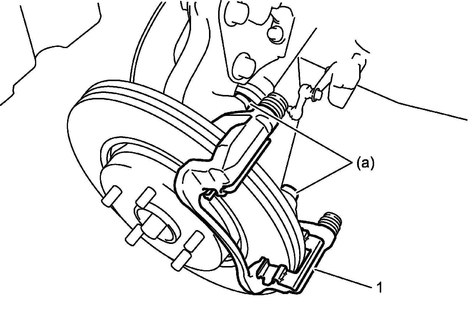 ^ Be careful not to damage brake flexible hoses.
