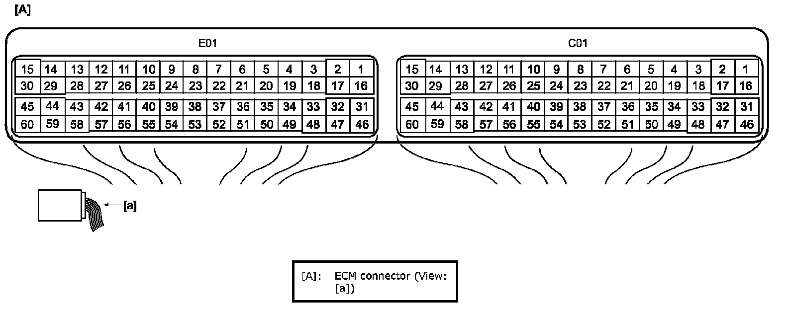 Terminal Arrangement of ECM Connector (Viewed from Harness Side)