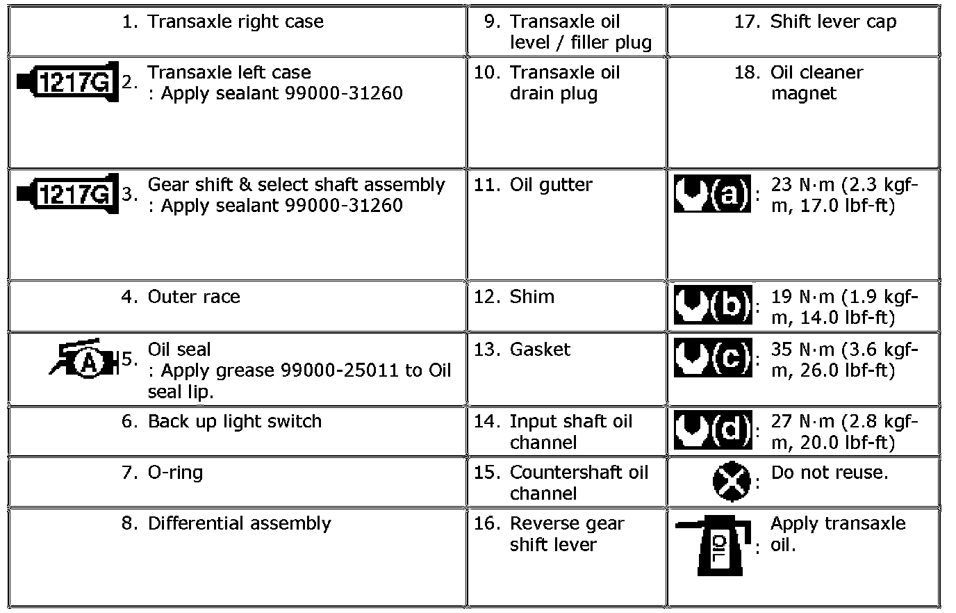 Manual Transaxle Assembly Components