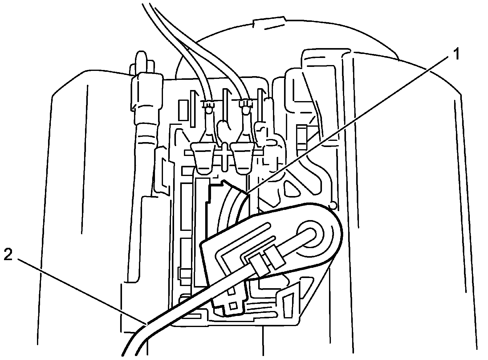 CAUTION: Do not touch resister plate (1) and cause deformation of arm (2). It may cause fuel level sensor to fail.