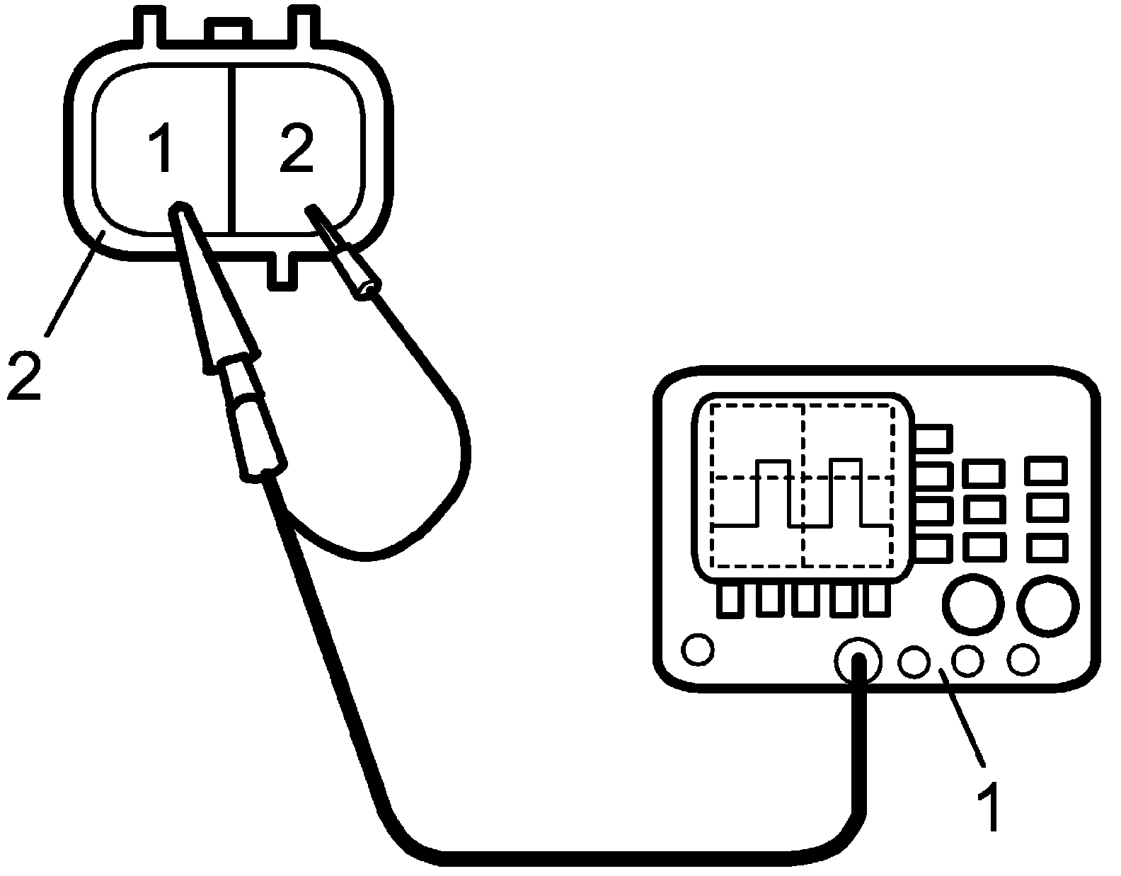 2. Connect oscilloscope (1) as shown in figure.
