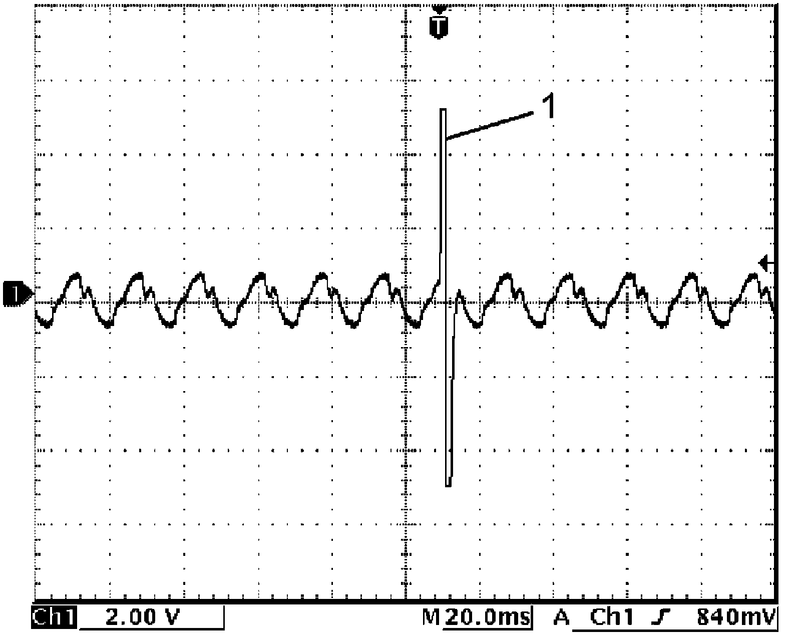 3. Check that knock sensor signal (1) shows the following waveform when plastic hammer inflicts a strong impact on the cylinder block.