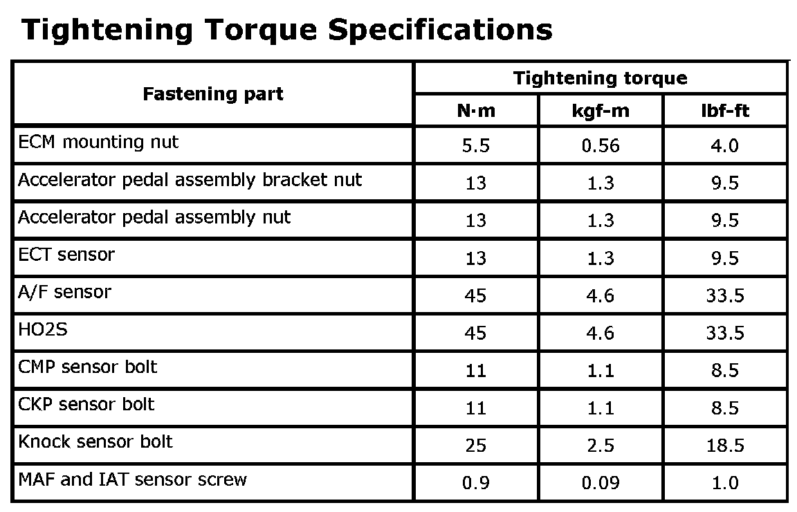Tightening Torque Specifications
