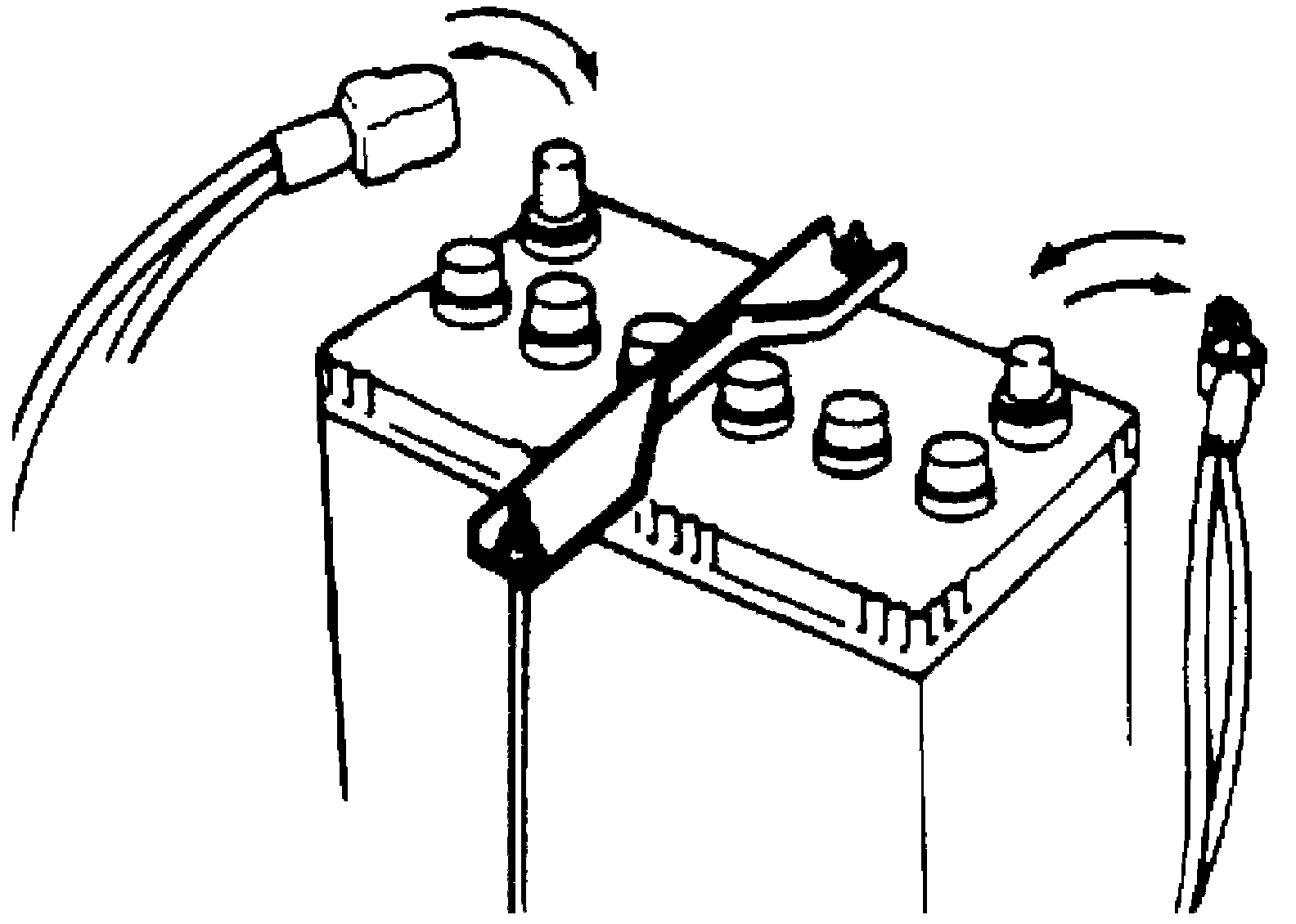 - When performing service to electrical parts that does not require use of battery power, disconnect negative (-) cable at battery.
