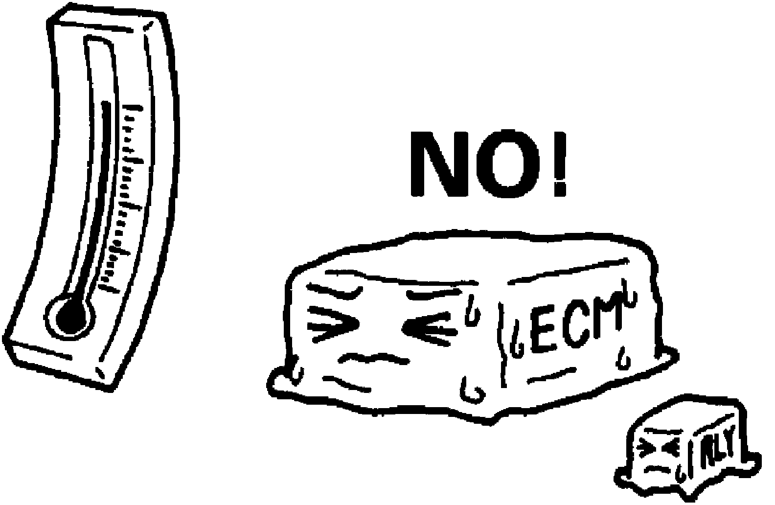 - When performing any work that produces a heat exceeding 80 °C (176 °F) in the vicinity of the electrical parts, remove the heat sensitive electrical part(s) beforehand.