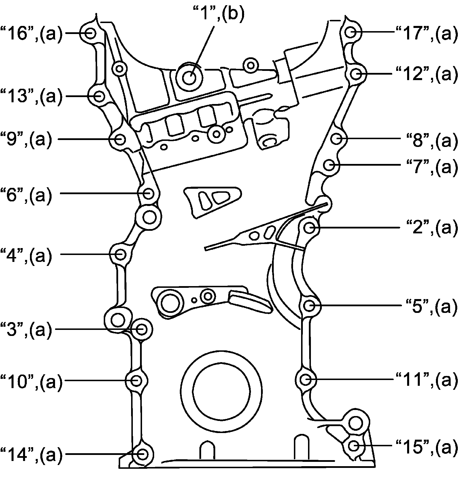 Timing chain cover bolt (M8 bolt) (a) 25 Nm (2.5 kg-m, 18.5 lbf-ft)