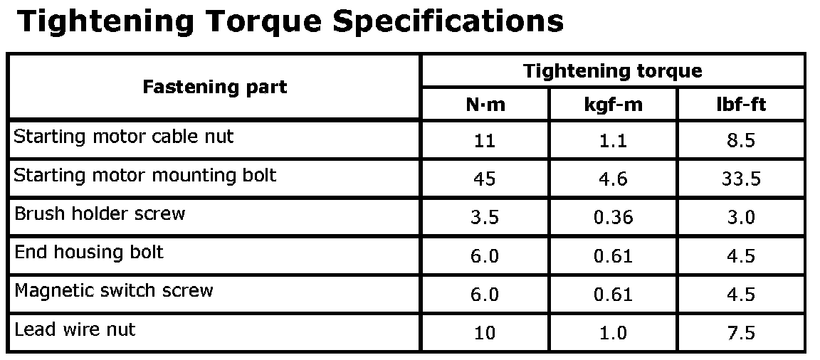 Tightening Torque Specifications