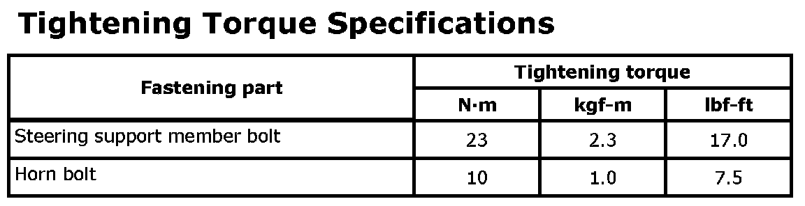 Tightening Torque Specifications