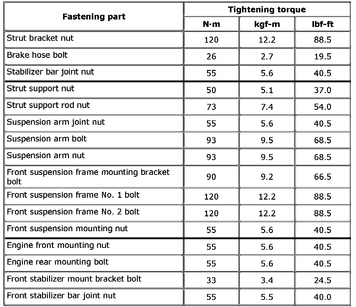 For the tightening torque of fastener not specified in this section, refer to Fasteners Information.