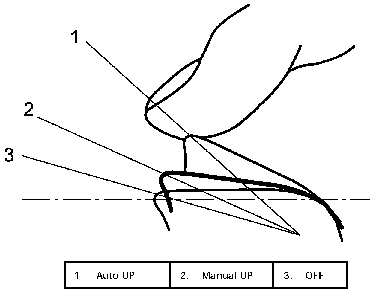 3. Pull up and hold power window switch in AUTO position until window glass reaches its fully closed position and continue holding it up for additional 2 or more seconds.