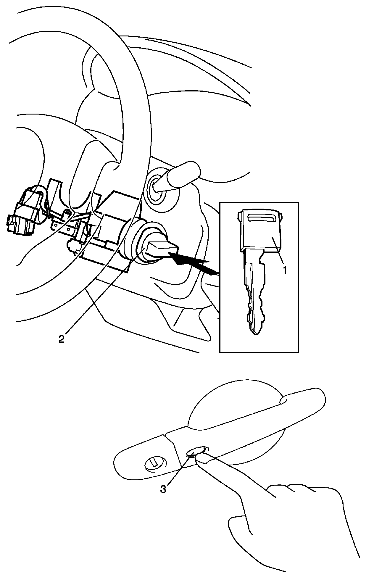 3. Check to make sure that ignition key is not inserted in ignition key cylinder. If it is, remove it.