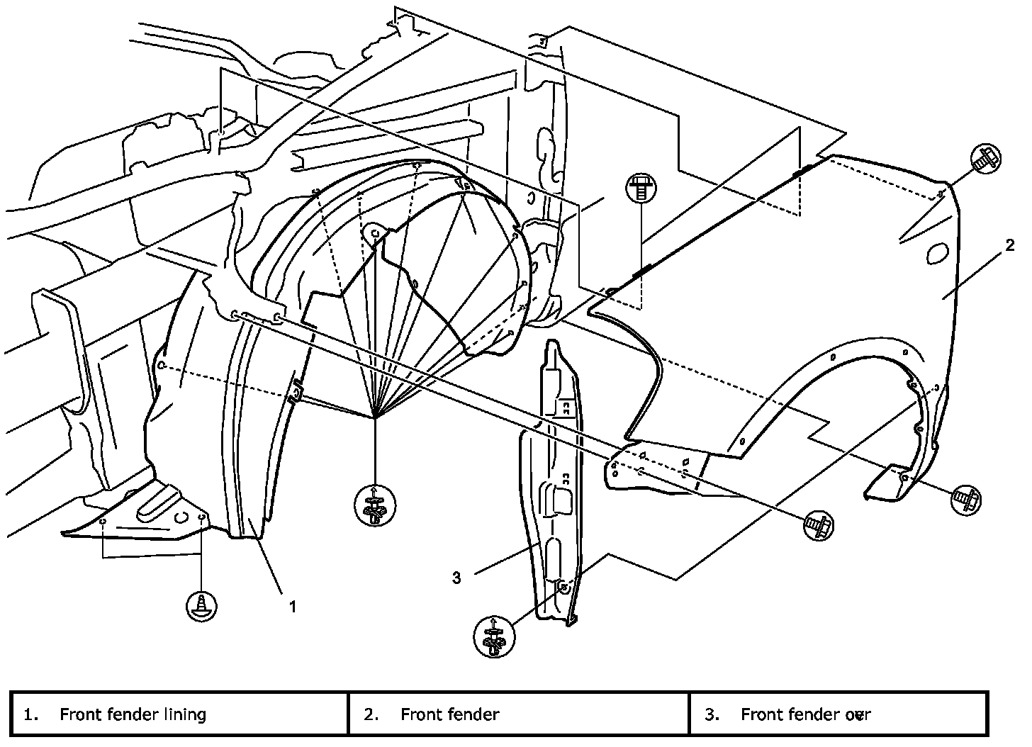 Front Fender ComponentsFront Fender Removal and Installation