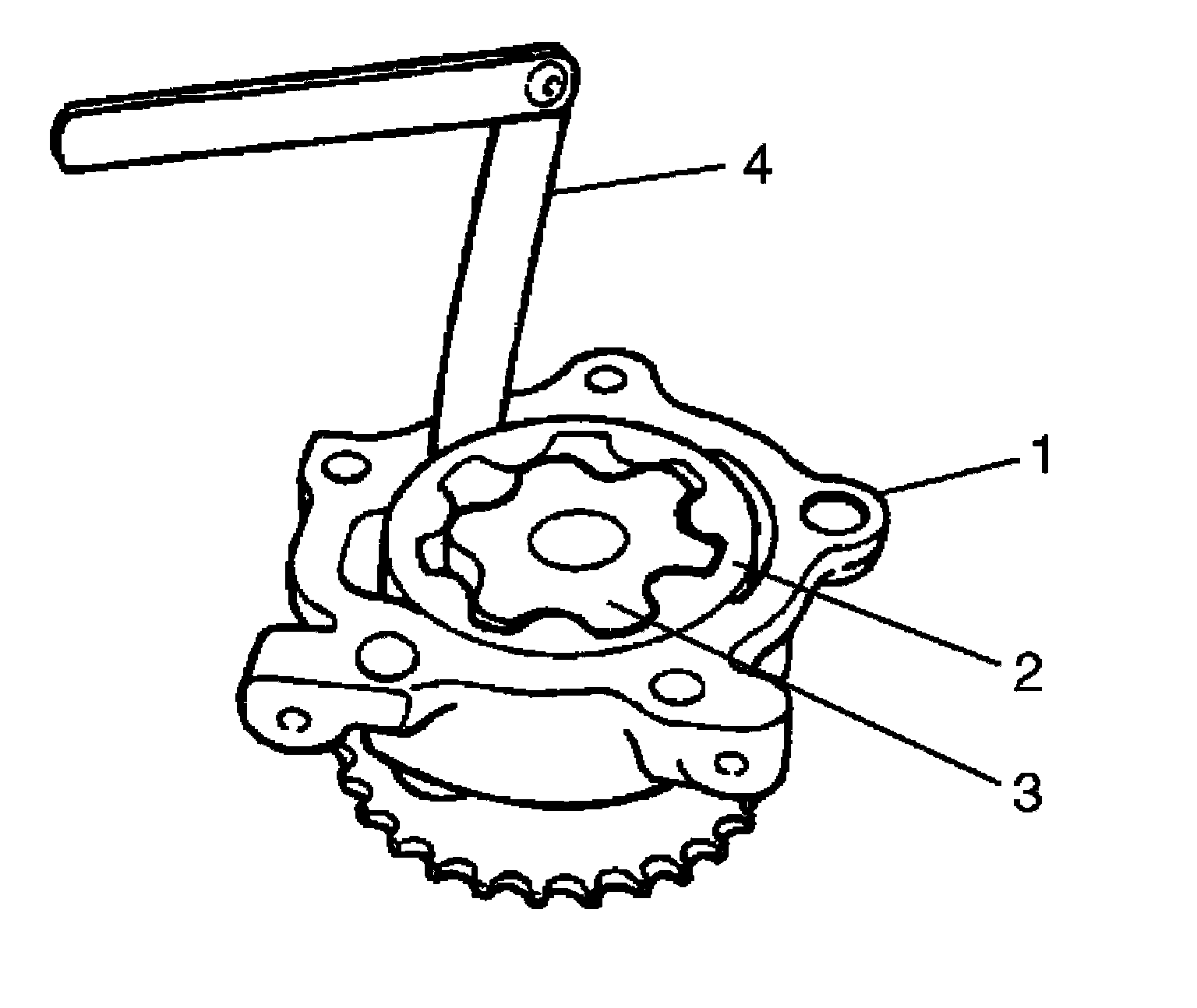 ^ Check outer rotor (3), inner rotor and oil pump cases (1), (2) for excessive wear or damage.