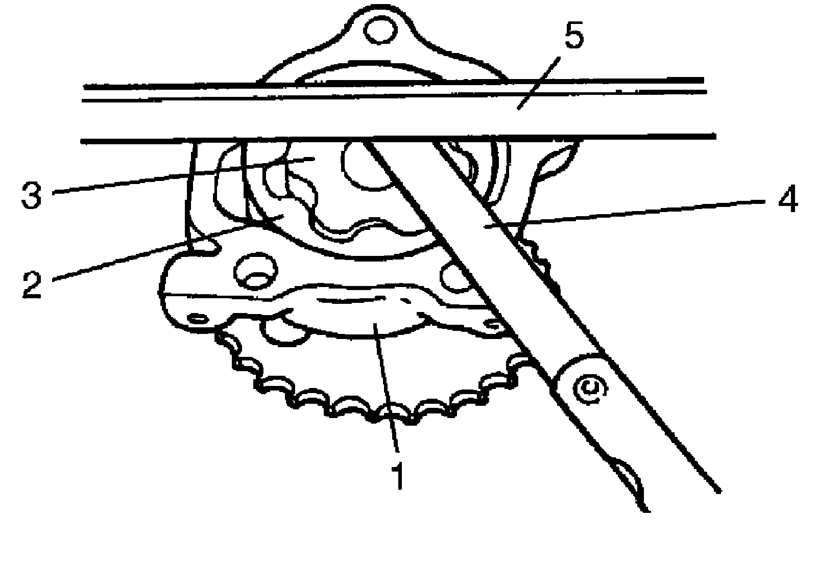 Using straightedge (5) and thickness gauge (4), measure side clearance.