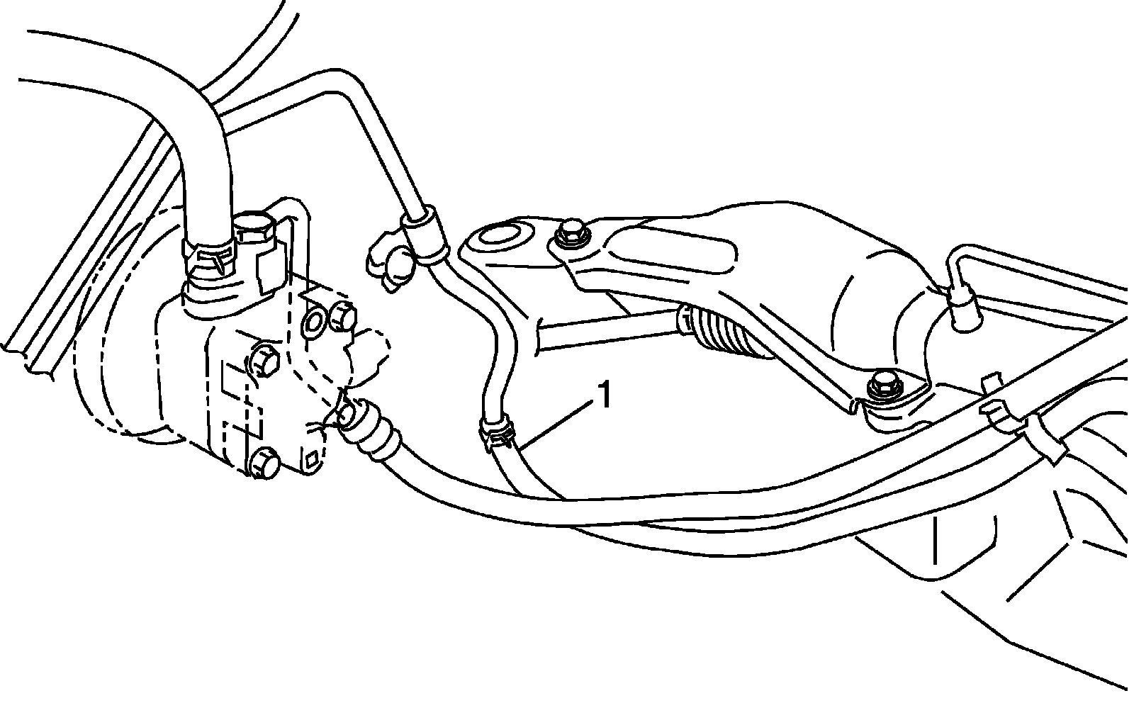 3) When engine is cool, remove P/S gear low pressure hose (1) from pipe and drain P/S fluid from low pressure hose.