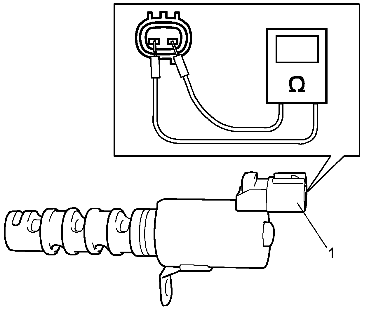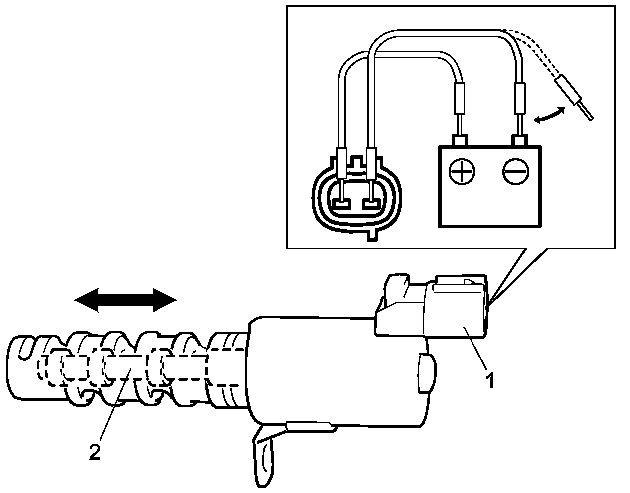 - Connect battery to OCV connector (1) as shown in figure, check operating sound at the same time operate spool valve (2).