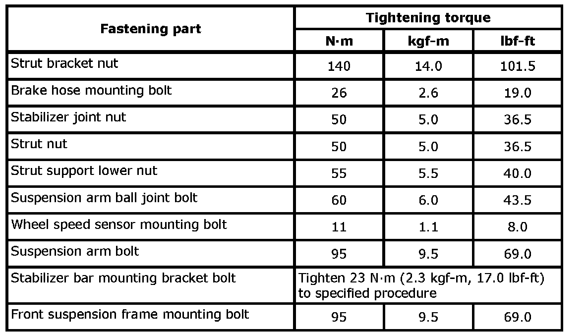 For the tightening torque of fastener not specified in this section, refer to Fasteners Information.