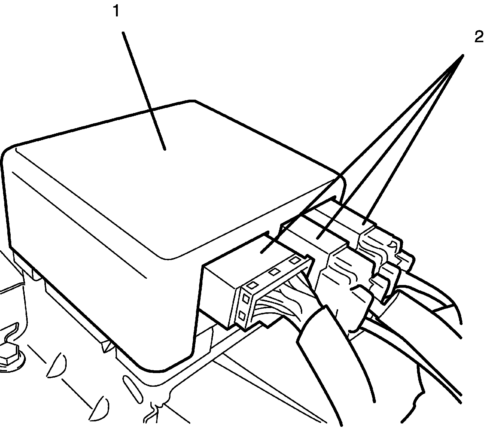 Inspection of P/S Control Module and Its CircuitsThe P/S control module (1) and its circuits can be checked at the P/S control module wiring couplers (2) by measuring voltage and resistance.