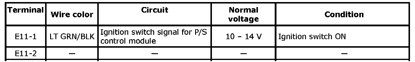 Inspection of P/S Control Module and Its Circuits