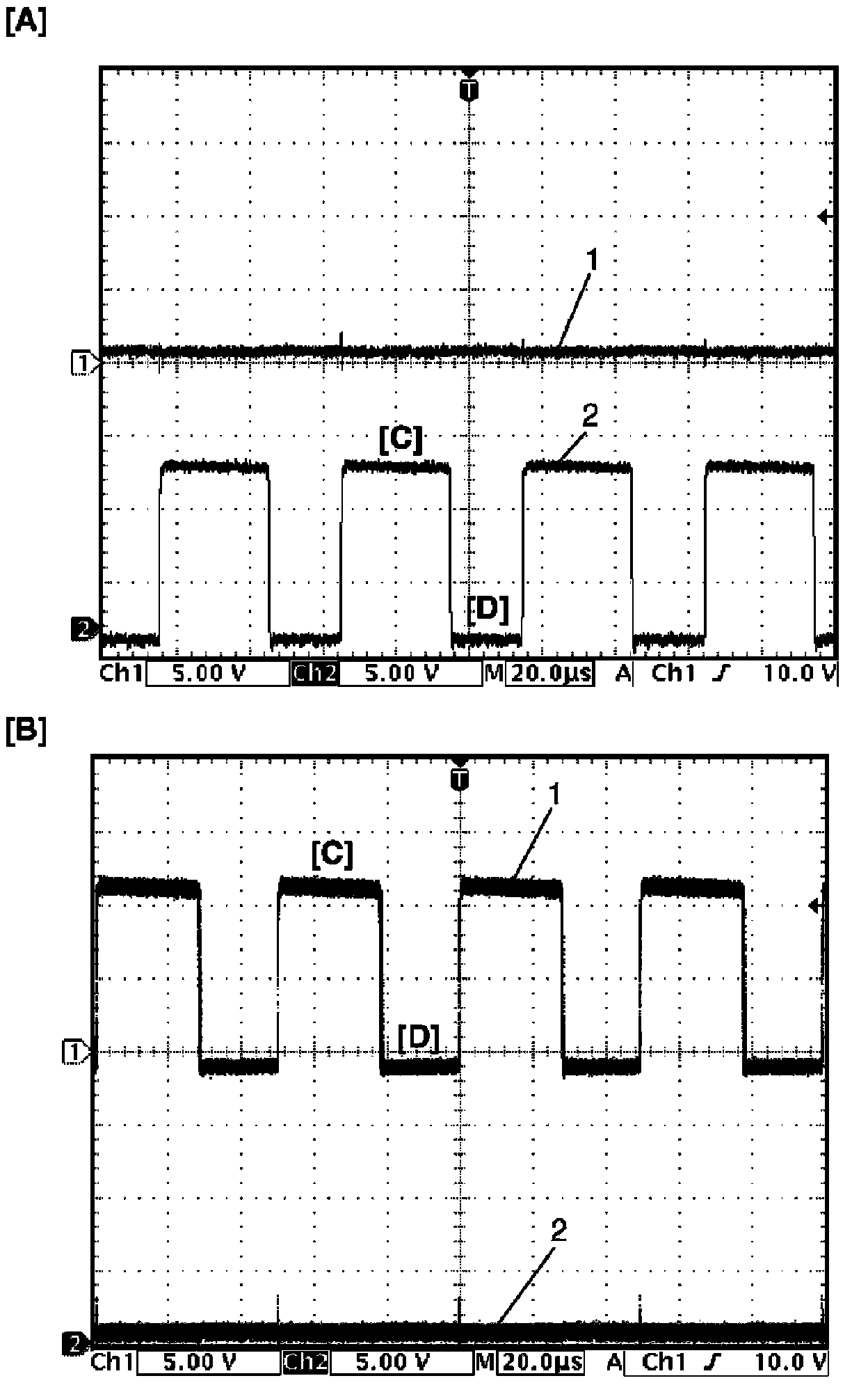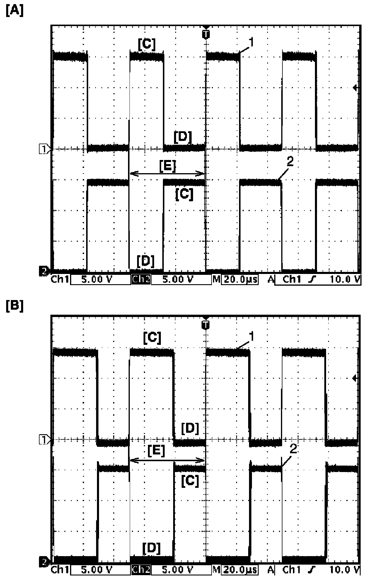 Motor output signal 1 (1), Motor output signal 2 (2), with engine idling